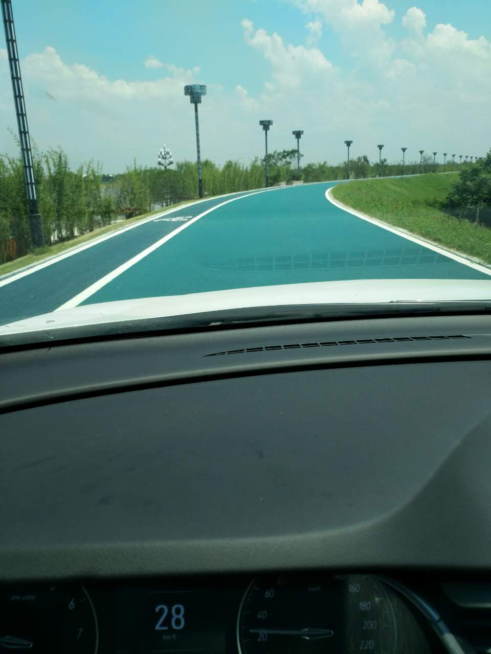 以下兩張圖片是修建好的用雙青顏料公司提供的彩色瀝青顏料制成的彩色公路,色彩鮮亮,效果非常好,客戶對于施工效果也非常滿意。